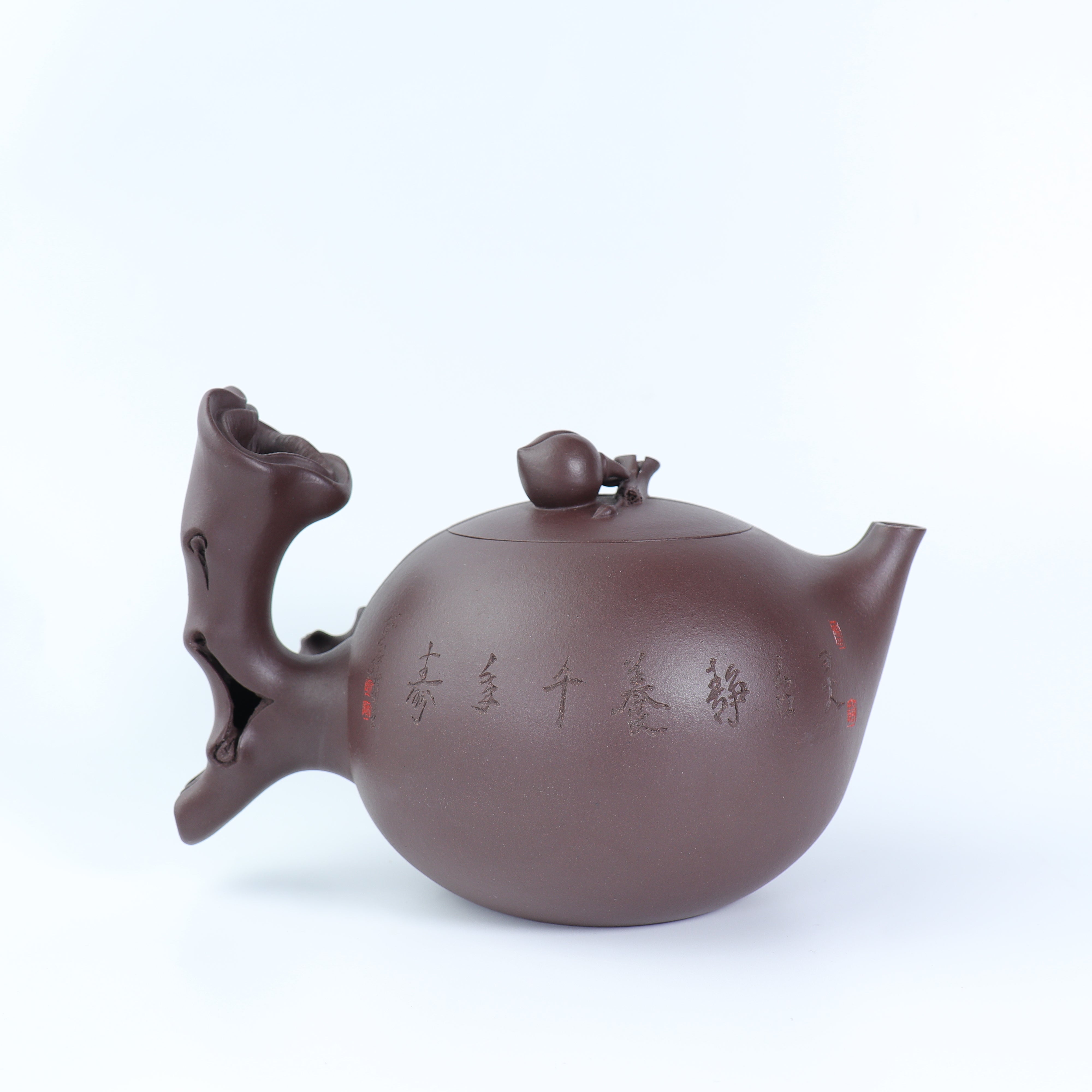 作品系列邀請「民國紫砂七老藝人」王寅春嫡孫女 - 王芳老師 及 其徒孫 陳成老師(王寅春之徒何道洪之唯一入室女弟子)全手摶砂。其中王芳全手工打造光素器五件,陳成則取其紫砂花貨之長,全手摶制花器五件。採用數種宜興頂級原礦老料(平均陳腐時間均逾30年),物料不惜工本,工藝不問時耗,只求耀世之功,傳世之器。