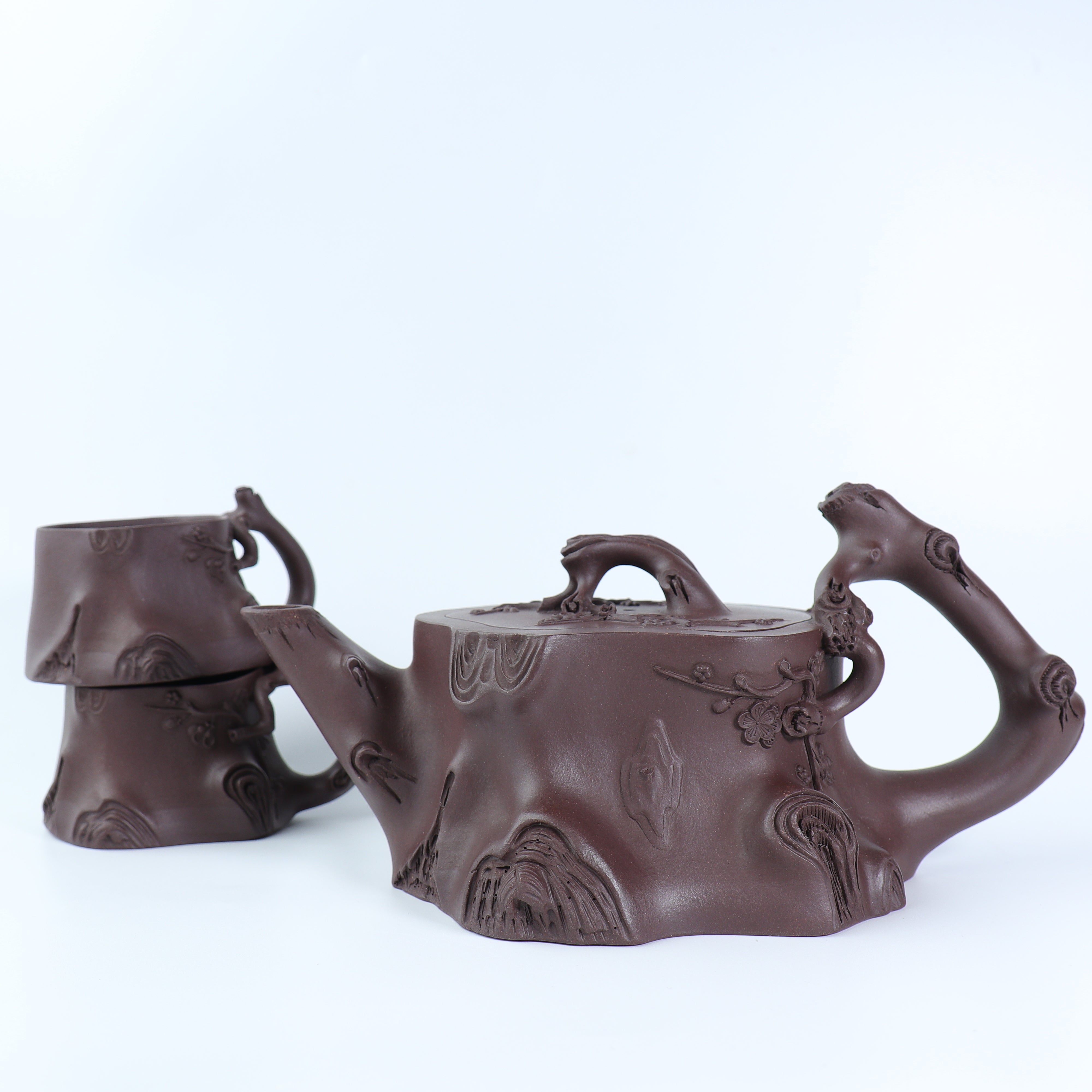 作品系列邀請「民國紫砂七老藝人」王寅春嫡孫女 - 王芳老師 及 其徒孫 陳成老師(王寅春之徒何道洪之唯一入室女弟子)全手摶砂。其中王芳全手工打造光素器五件,陳成則取其紫砂花貨之長,全手摶制花器五件。採用數種宜興頂級原礦老料(平均陳腐時間均逾30年),物料不惜工本,工藝不問時耗,只求耀世之功,傳世之器。