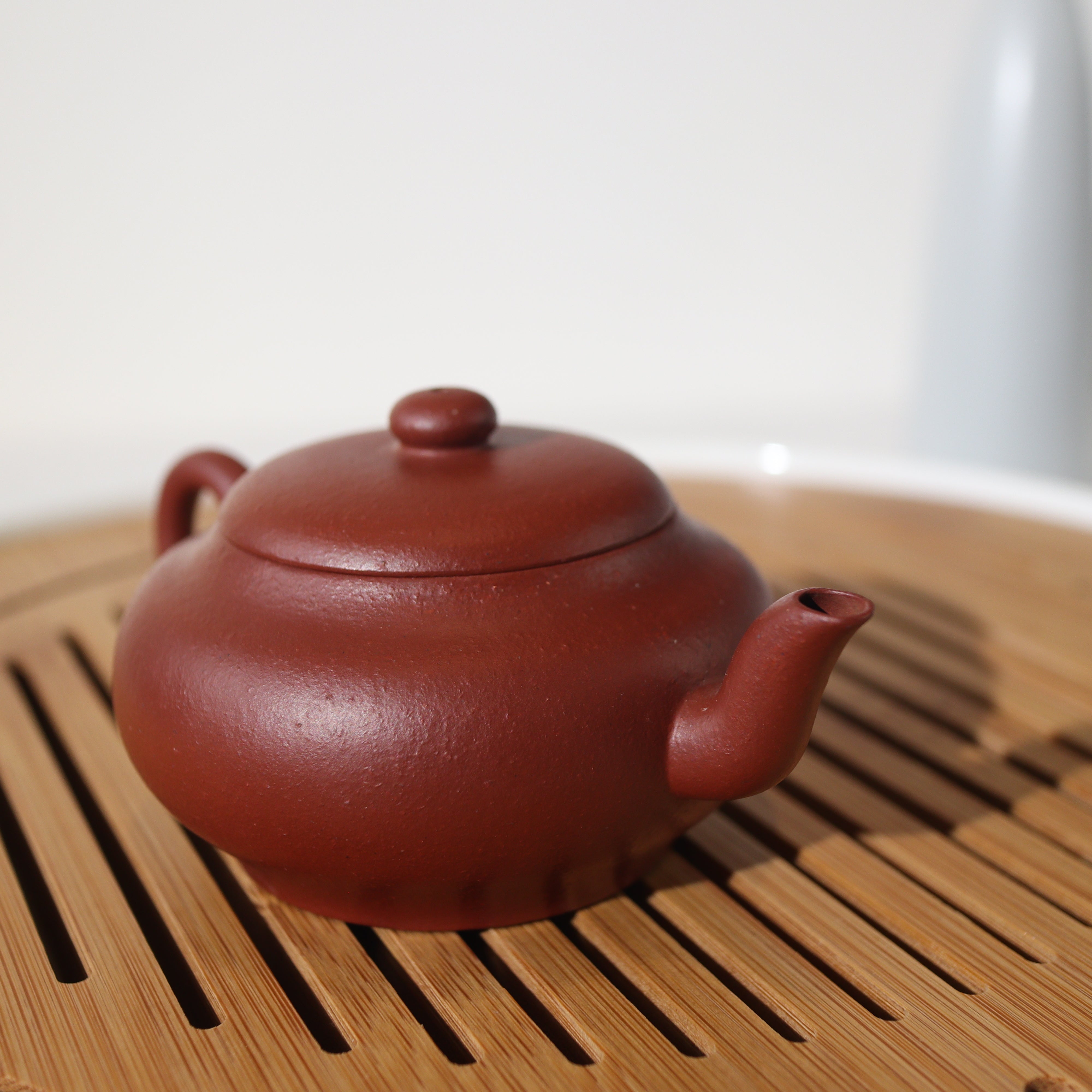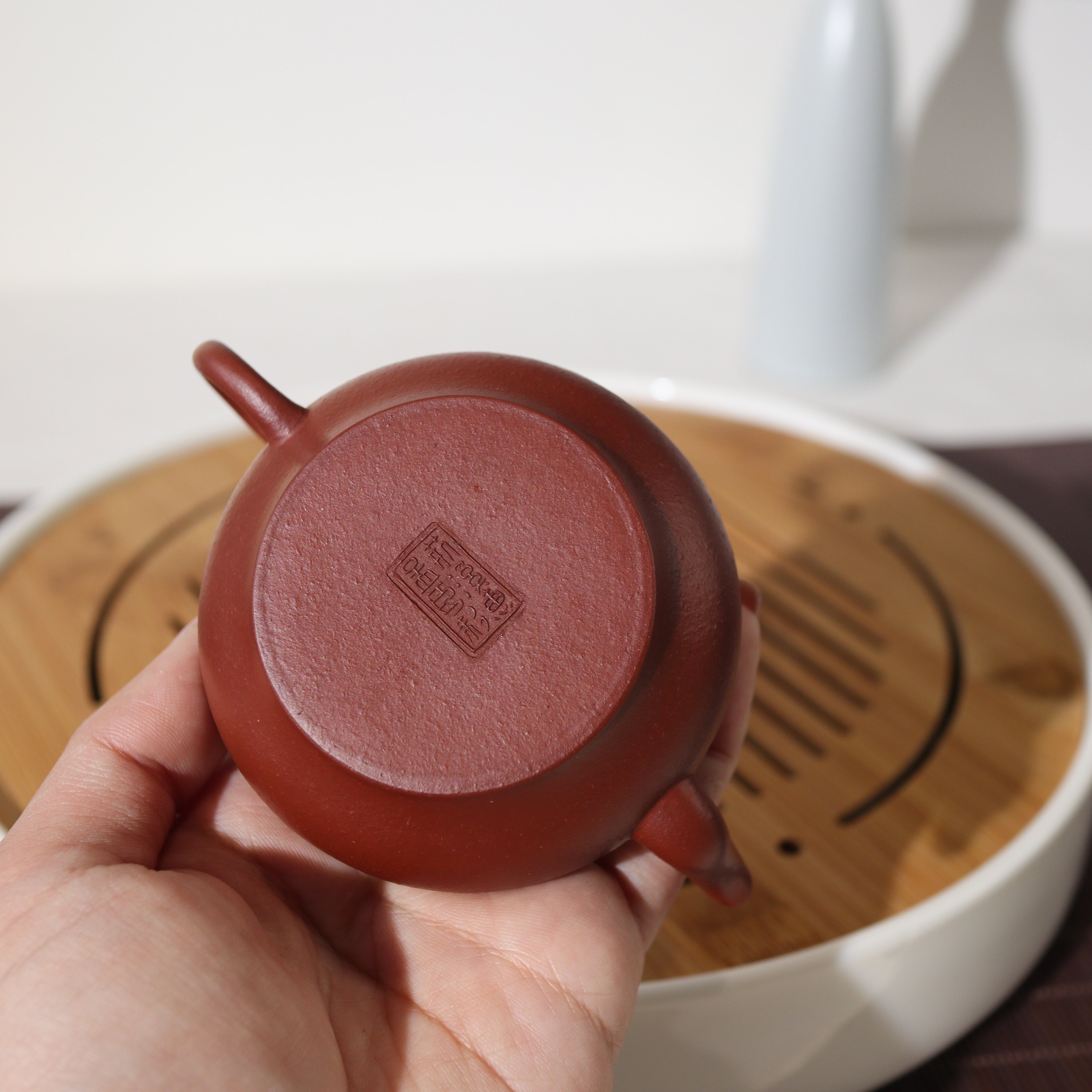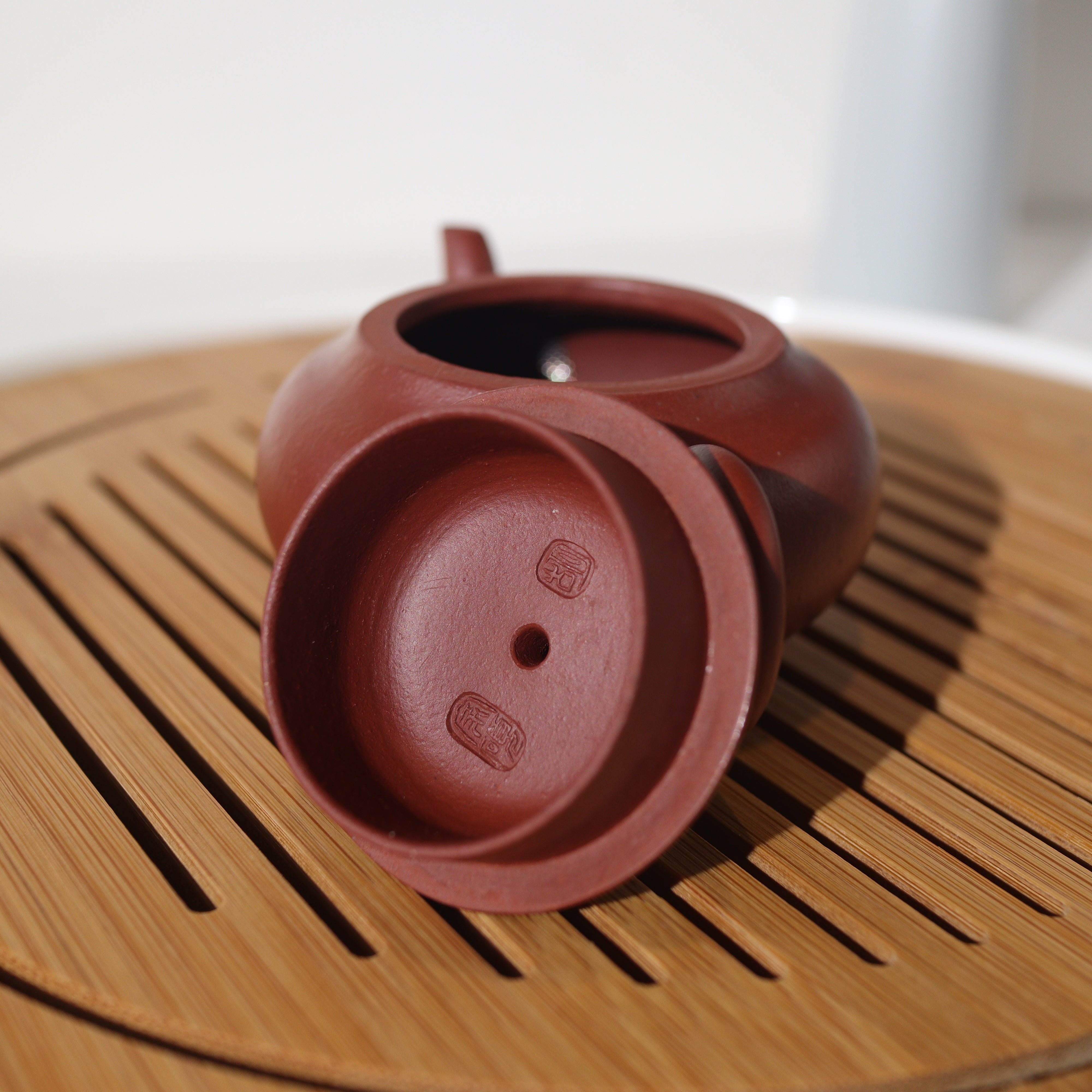 壺品特色:此壺乃臨摹清代製壺名家惠孟臣,底章可見「荊溪惠孟臣制」以致敬古人作品。茶壺以砂感極重的朱泥製成,韻味非凡。