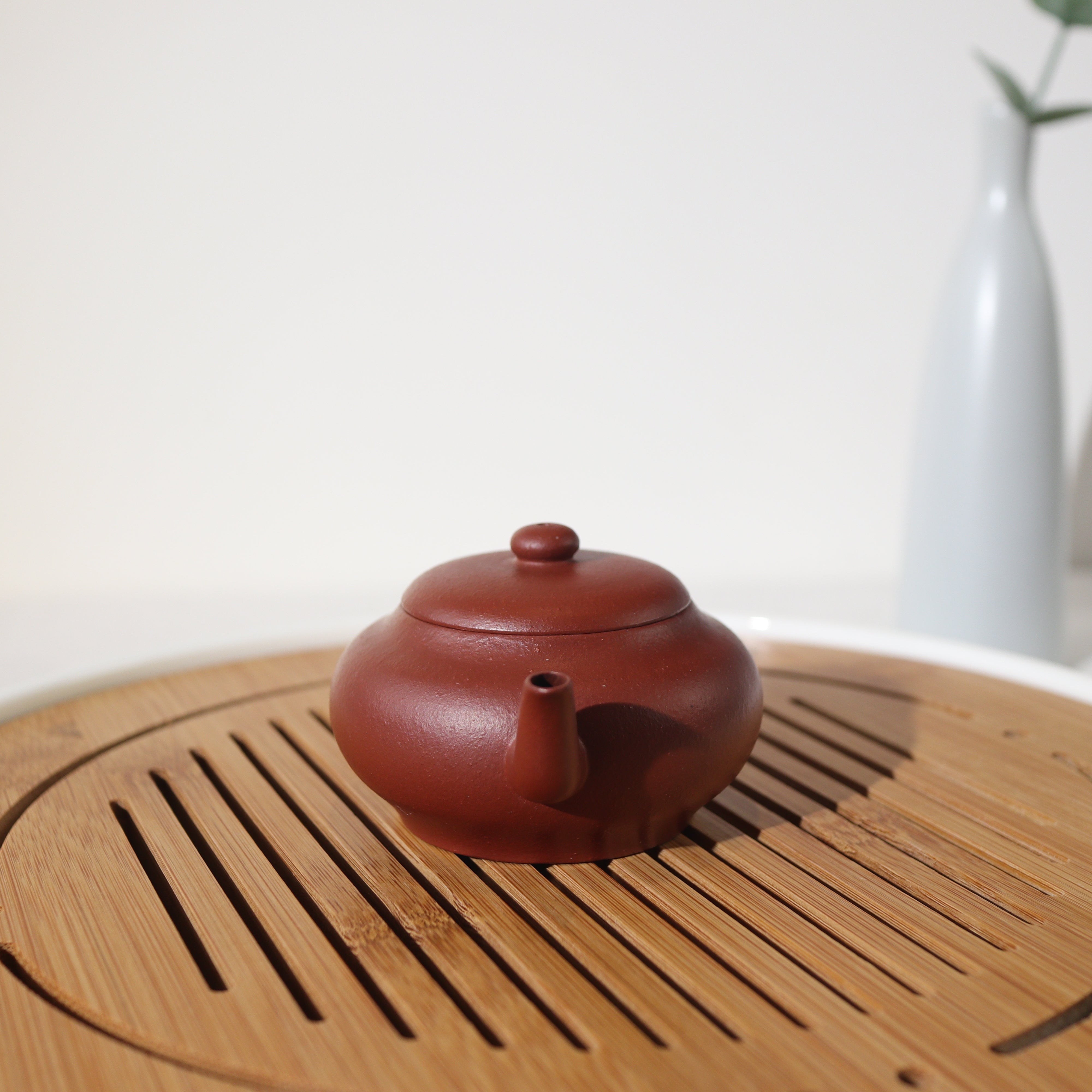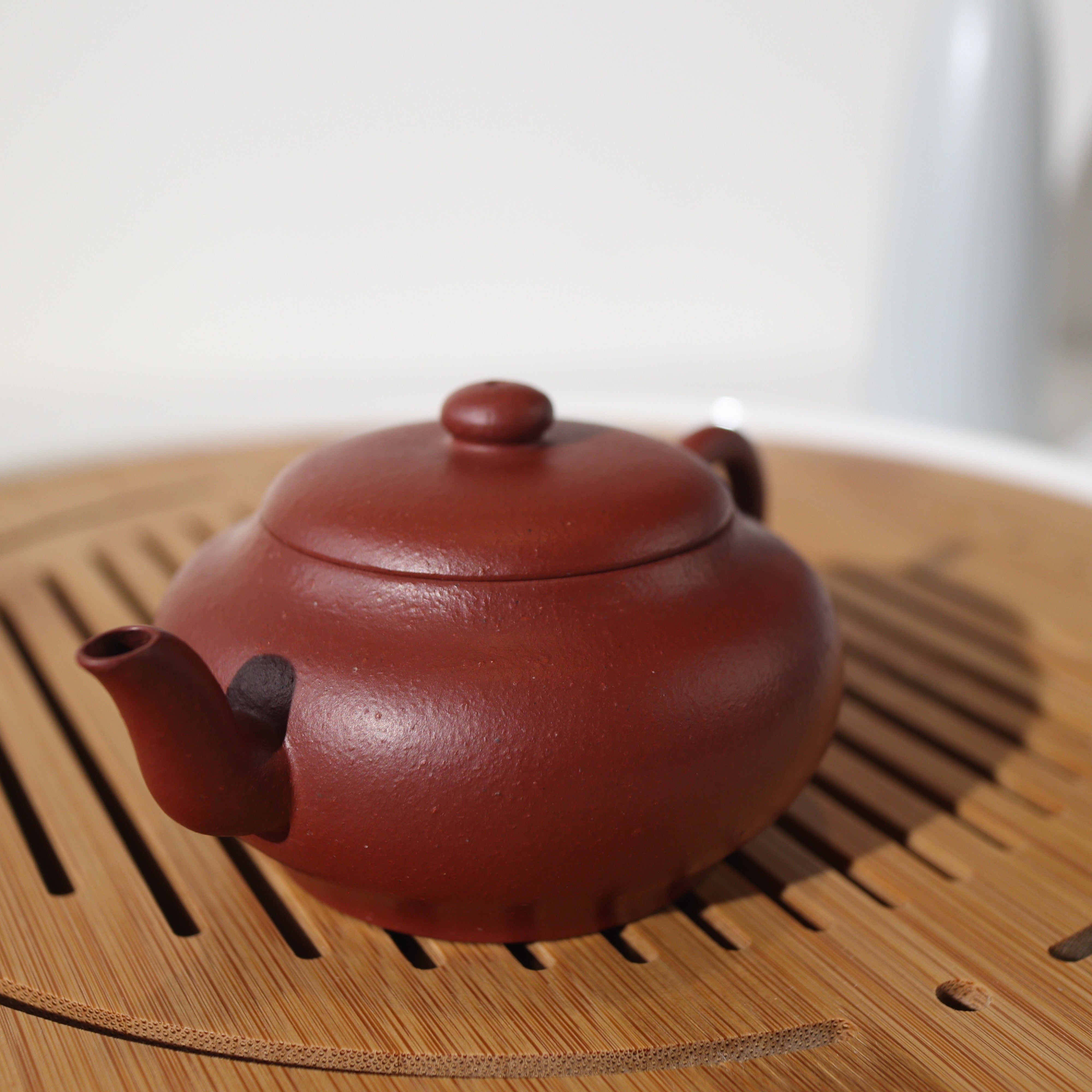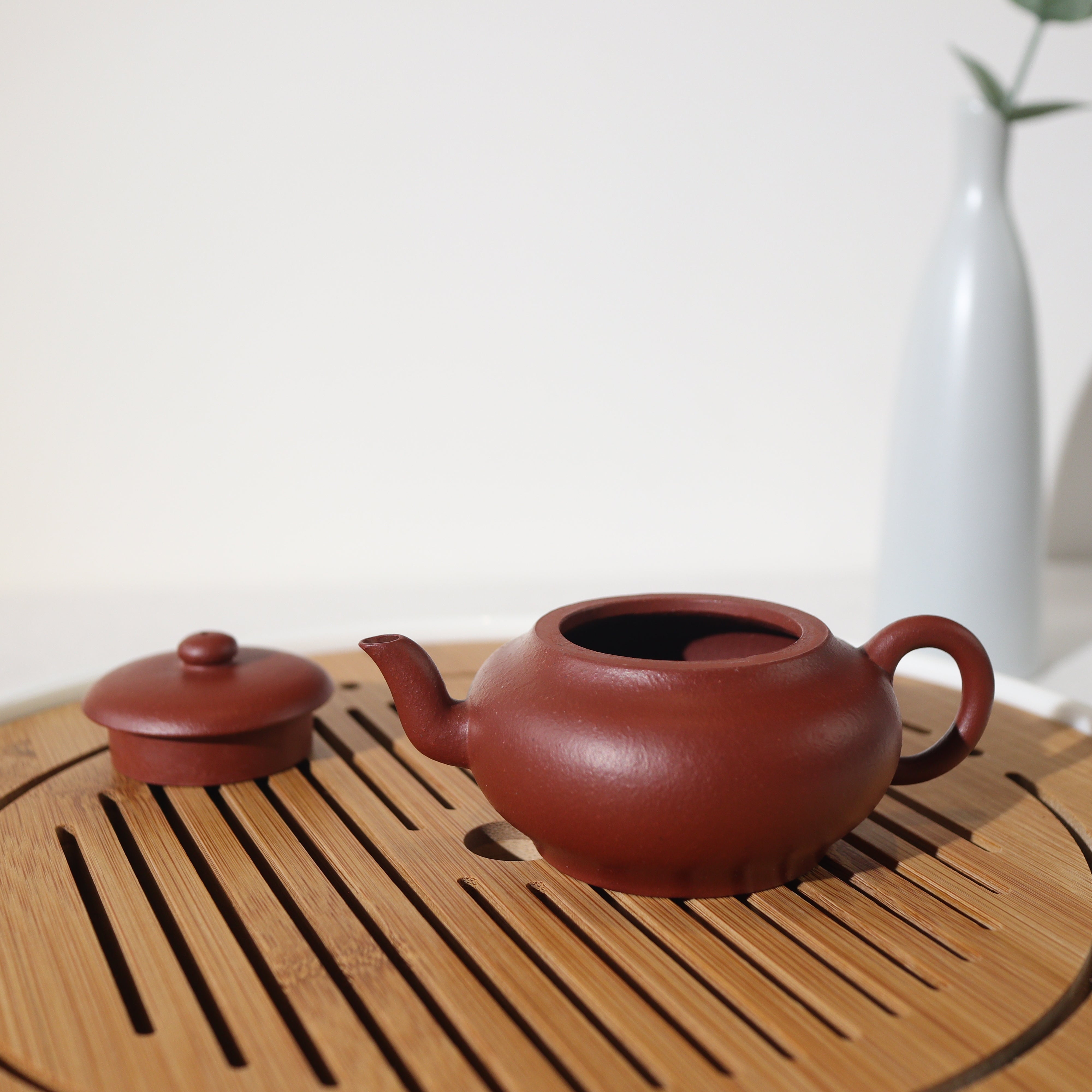 壺品特色:此壺乃臨摹清代製壺名家惠孟臣,底章可見「荊溪惠孟臣制」以致敬古人作品。茶壺以砂感極重的朱泥製成,韻味非凡。